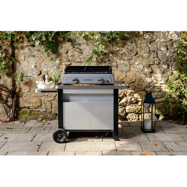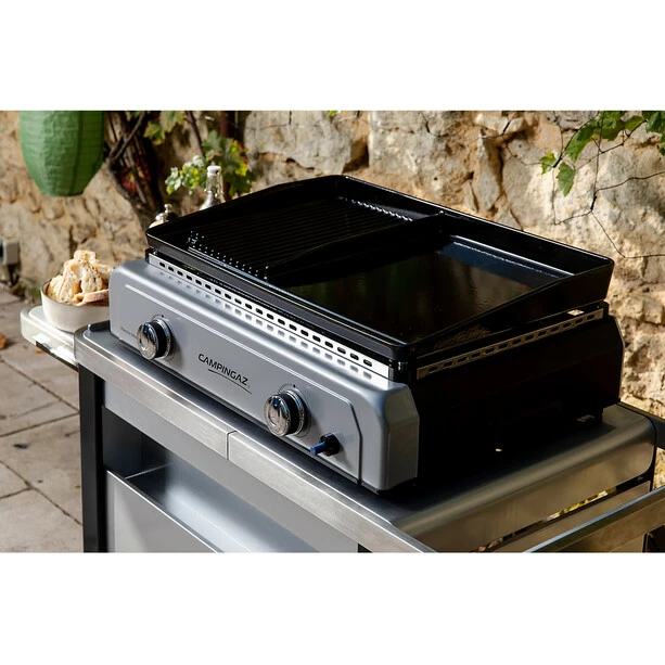 The Mediterranean way of grilling is now even more beautiful: Smooth cast iron and grill grate, paired with the patented Blue Flame burner technology ensure very good heat distribution and make grilling on the Plancha Othello 2 X Twin a pleasure. The enamelled cast iron plate ensures perfect heat transfer and is also easy to clean after the grilling pleasure. The grill grate allows you to grill meat with the typical BBQ stripes and the plate offers enough space for the right side dish. The grease drip tray on the side is easily accessible and can be placed in the dishwasher. With the electronic ignition, your plancha is ready to go in no time.