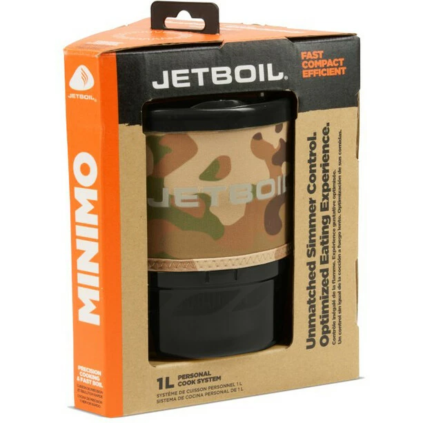 Built with backpackers in mind, the MiniMo cooking system combines Jetboil’s tried-and-true efficiency and versatility with a convenient form factor. Powered by FluxRing technology, the MiniMo reaches a rolling boil in just over two minutes with half the fuel consumption of traditional systems. Jetboil’s proprietary regulator technology offers incremental heat adjustments from light simmer to full boil, perfect for sautéing greens, simmering sauces, and more. Metal handles and a redesigned FluxRing cooking cup—optimized for a low spoon angle—make the MiniMo the perfect vessel for personal cooking and eating. Start heating instantly with the convenient, reliable pushbutton igniter; save pack space with the clever sideways burner storage design. Includes fuel canister stabilizer and pot support; easy to pack and carry at only 14.6 ounces.