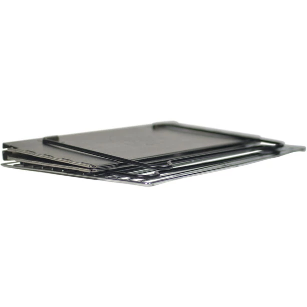 Stainless steel construction for durability and easy maintenance. Quick 30 second set-up. Stable base for safe grilling. Sides of grill serve as wind break for grilling inwindy conditions. Perfect for travel and picnic.