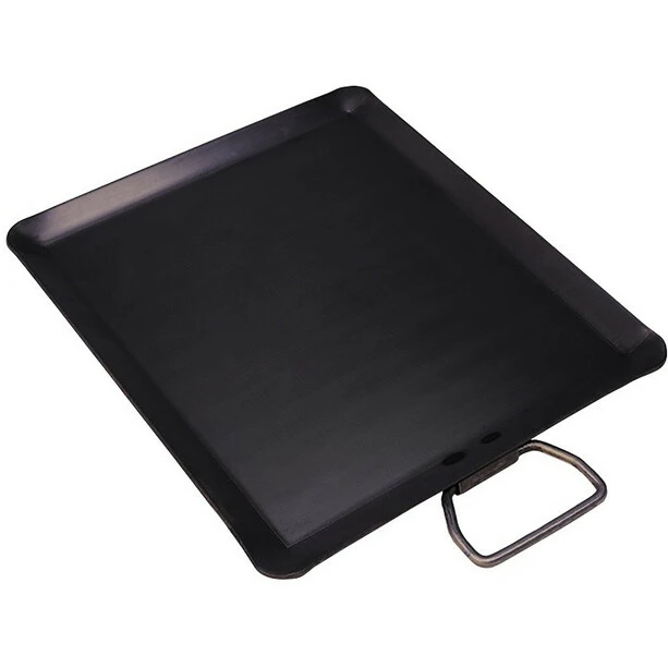 Cook your favourite food on the Universal Flat Top Griddle. Its sloped sides make cooking easy and will keep the mess to a minimum. This durable griddle has a handle for easy transport. Designed to fit Camp Chef’s 14″ cooking systems, this griddle is perfect for all kinds of outdoor cooking. Also fits many other outdoor stoves.